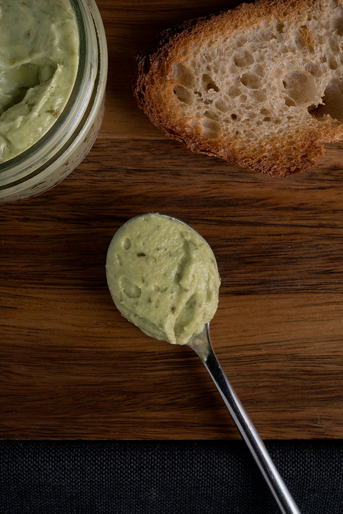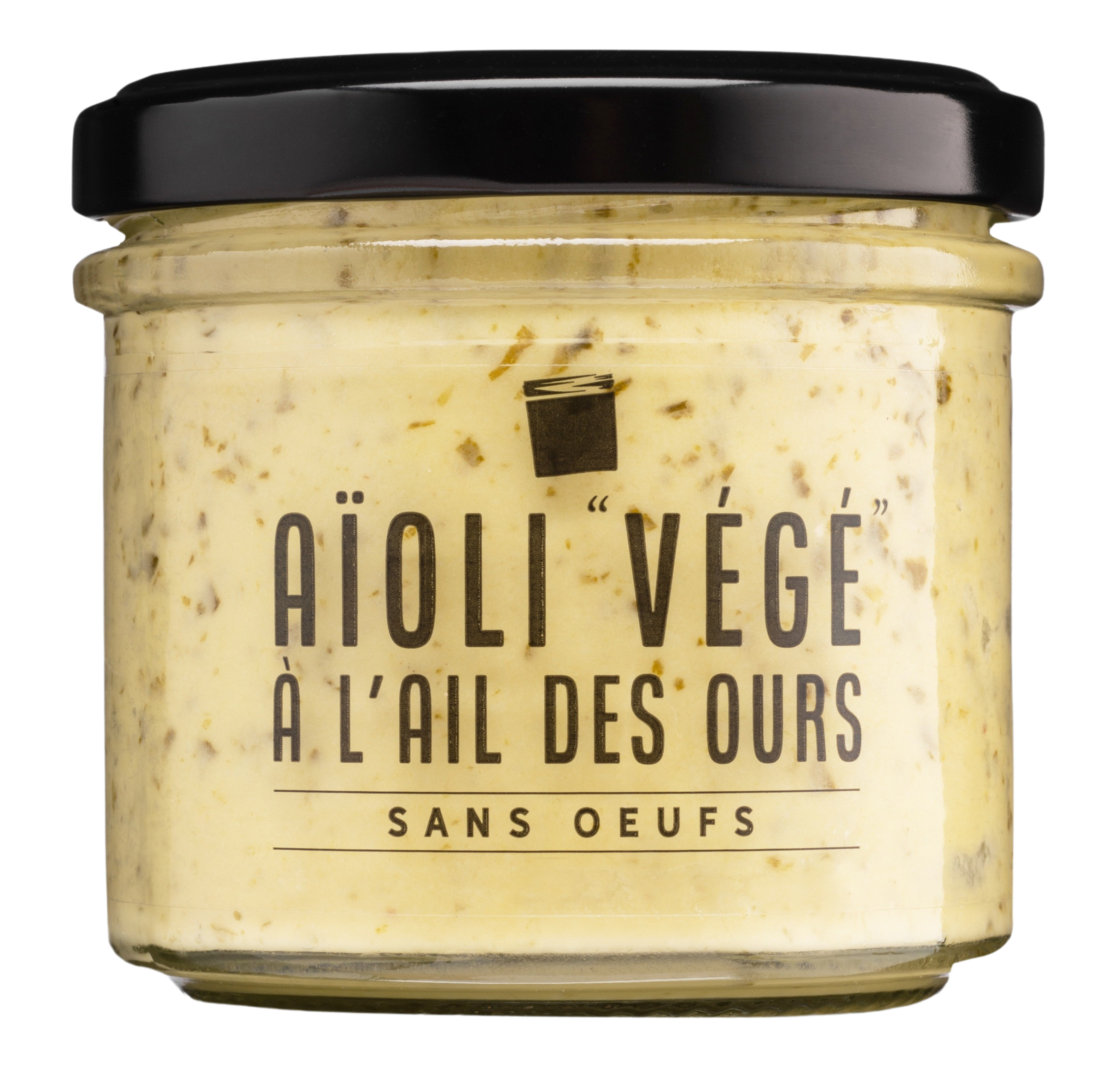 Huile de colza (50,2%), amandes, eau, huile d’olive, ail rose du Tarn, citron jaune, ail des ours à l’huile d’olive (10,4%), sel gris de Millac, poivre sauvage de Madagascar.