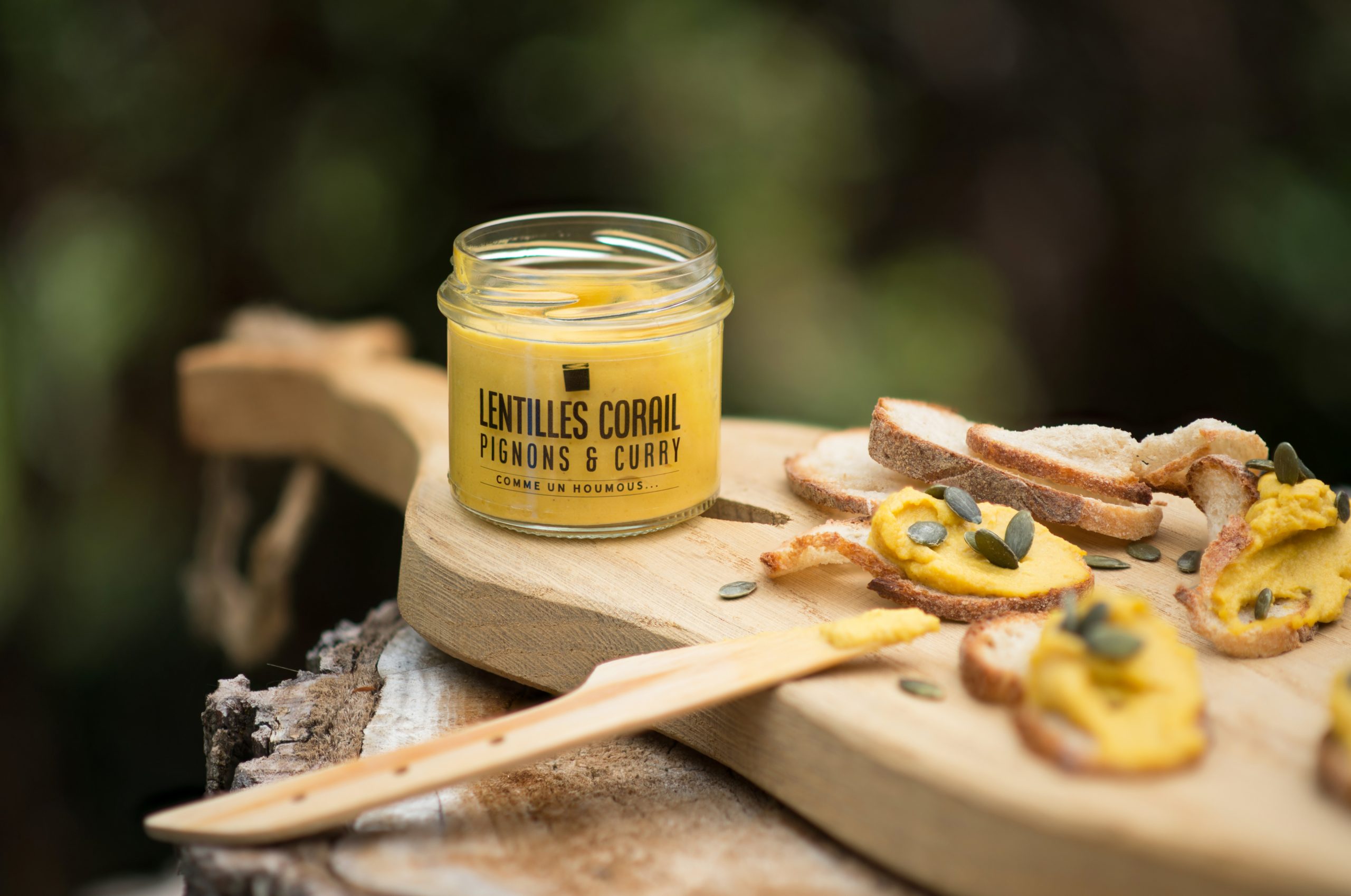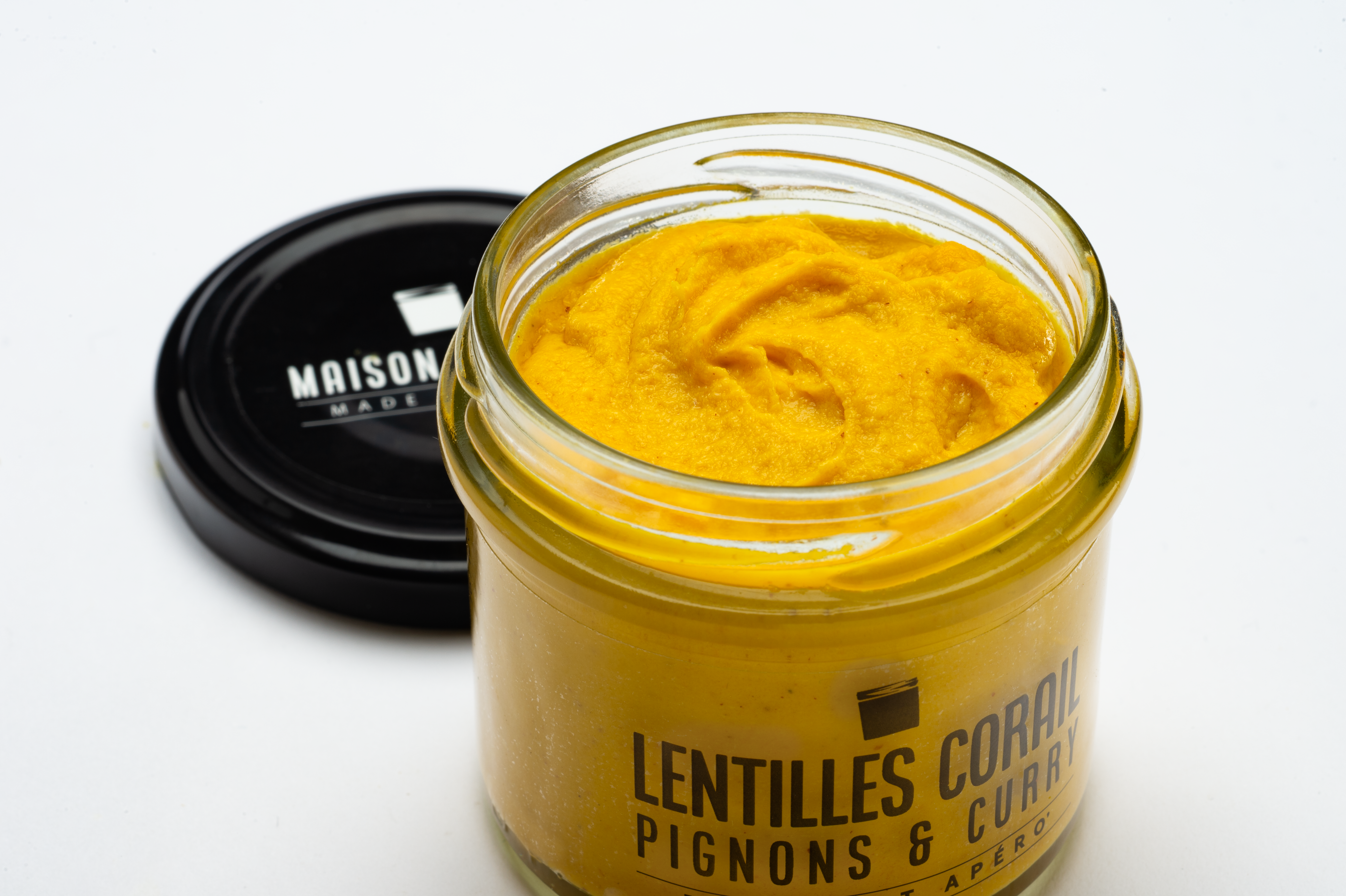 Lentilles corail (14%), carottes, huile de colza, pignons de pin (8,5%), citron jaune, abricots secs, gingembre, ail rose du Tarn, curry de Madras, carvi, sel gris de Millac.